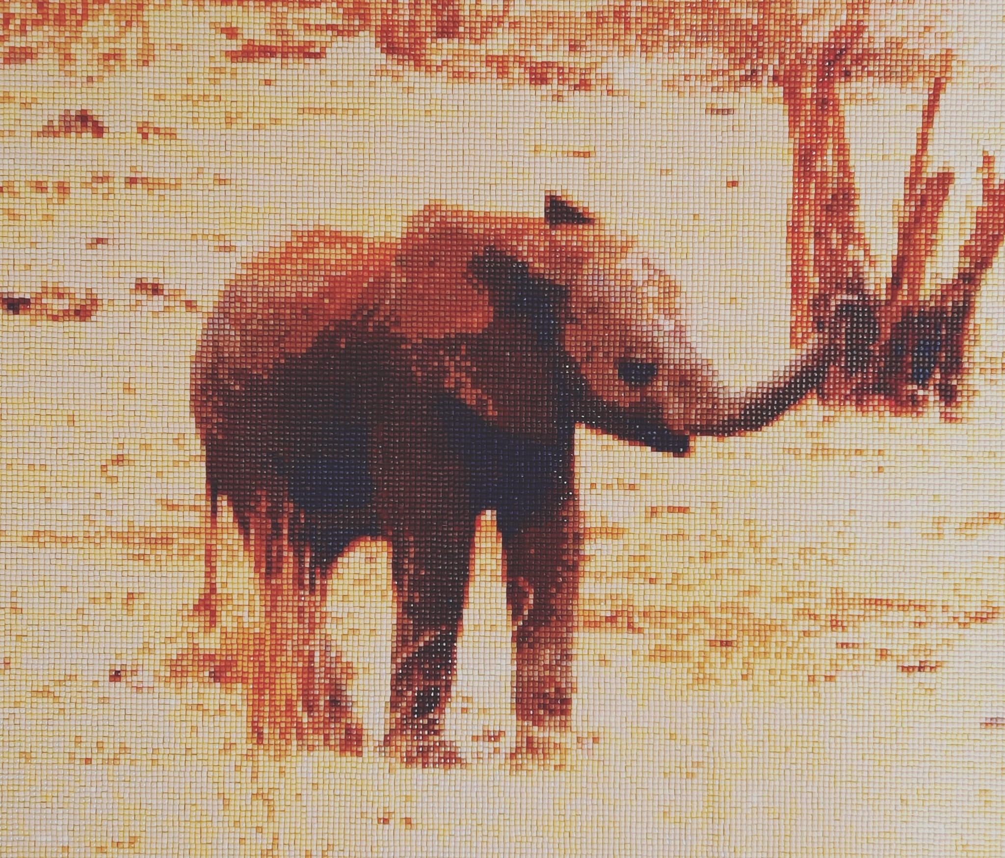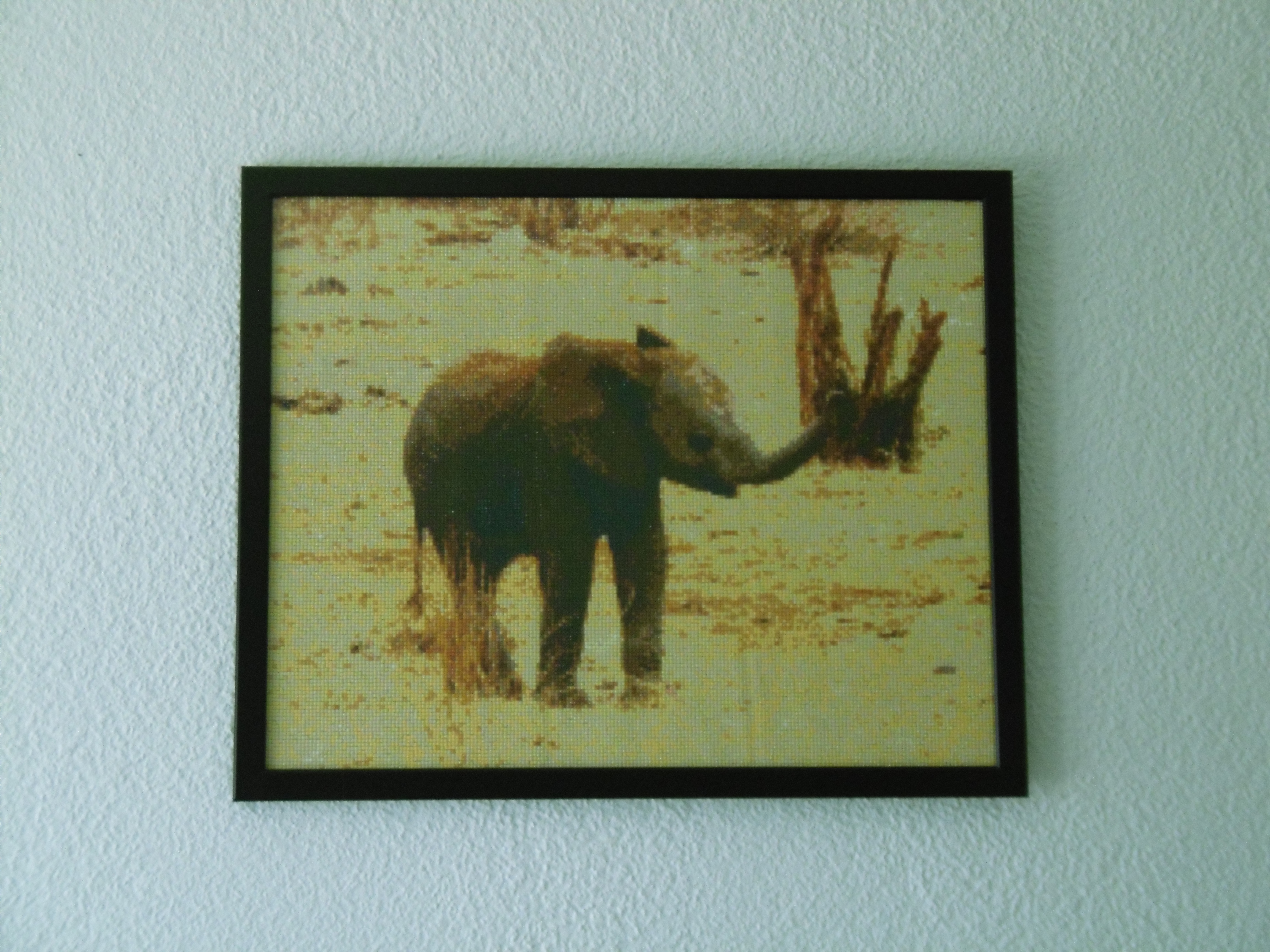 Diamond Painting Bild mit Elefantenbaby. Es ist das gleiche Baby wie auf dem Bild "Elefantenmama mit Baby". Wir haben das Elefantenbaby zusammen mit seiner Mutter und Herde bei einer Safari im Tsavo Nationalpark in Kenia gesehen Masse: 40 x 50 cm