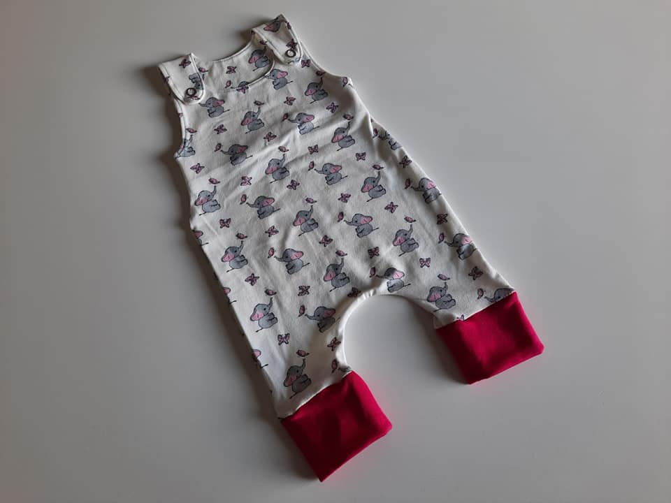 Strampler Elefäntli Weiss-Pink / Gr. 50-56