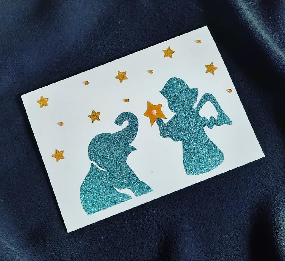 Weihnachtskarte Elefant mit Engel